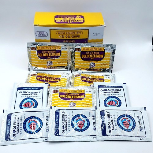 | 어밥 골든엘바진 5포 아쿠아크리나 5포 총 10포 세트 어항 수질개선 박테리아 활성 관상어 열대어 물고기 비타민 첨가 |