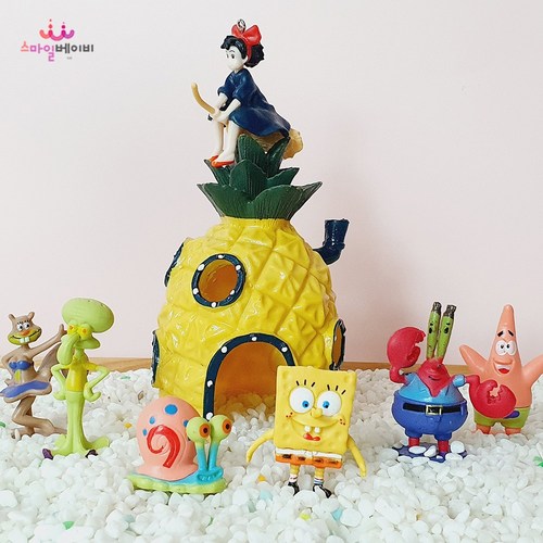 스마베 어항장식 어항피규어 스펀지밥 스폰지밥 어항꾸미기세트 파인애플 이스터집 집게리아 소품, 13_파인애플+피규어6종+키키