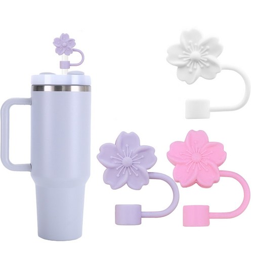 [3p세트] 빨대 마개 12종 스탠리 텀블러 호환 10mm 퀜처 텀꾸 실리콘 캡 스트로우 커버, 3벚꽃3종