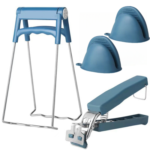 | AatW 냄비손잡이 주방용 미끄럼 방지 그릇 냄비 집게 4종 세트, 뜨거운 집게*1+접시 집게*1+냄비손잡이*2, 푸른 색 |
