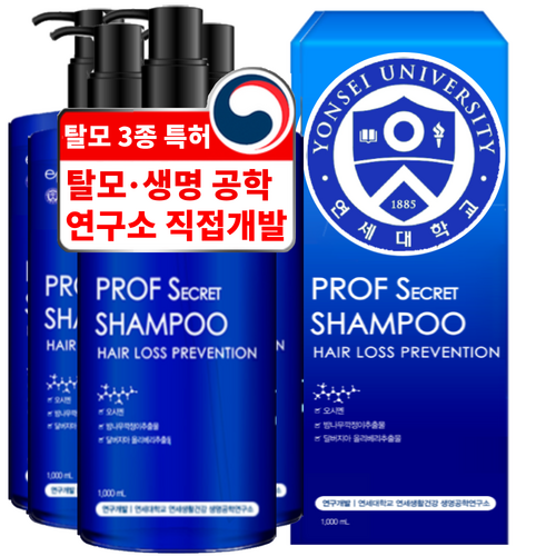 | 연세생활건강 프로프 시크릿 탈모증상완화 3종 특허 기능성 샴푸, 1L, 4개 |