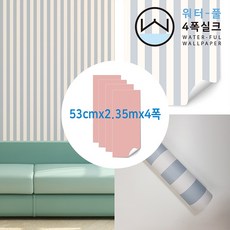 | 무지막지 워터풀 물벽지 풀바른 네폭실크벽지 패턴 멀티라인스트롱(53cmx2.35mx4폭) M24-T035-4, 블루계열 |