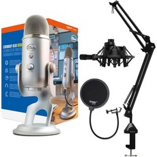 블루 마이크 예티 USB 실버 보따리에 붐 암 마운트 팝 필터 4개