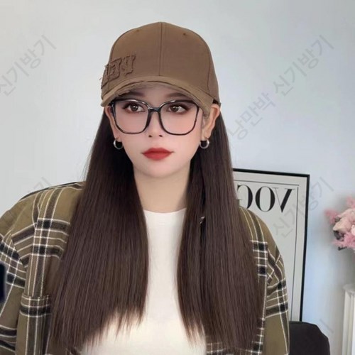 | Dachen 가발모자 일체형 긴생머리 롱 환자 힐링 PEAC 야구 모자가발 패션 큰창, 단일사이즈, 브라운 모자 – 긴 생머리 연한 브라운 |