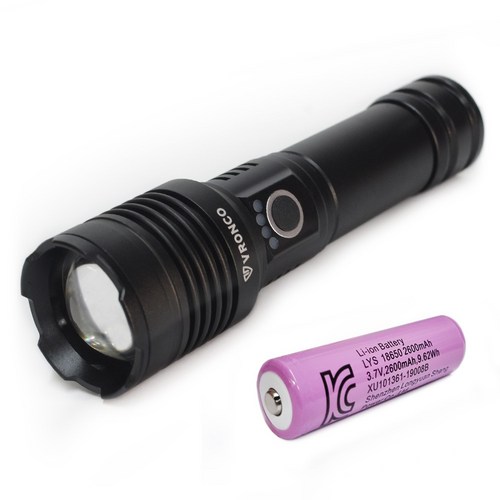 | 브론코 초강력 LED 손전등 충전식 후레쉬 줌 라이트, 1개 |