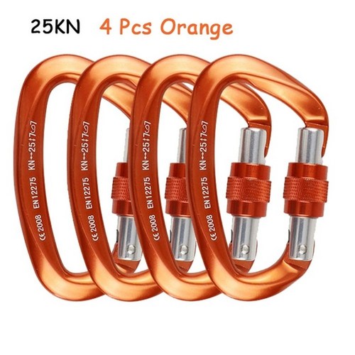 | 전문가용 카라비너 등반버클세트 D형 25KN 고강도 캠핑카라비너 고강도카라비너, 오렌지 4개 |