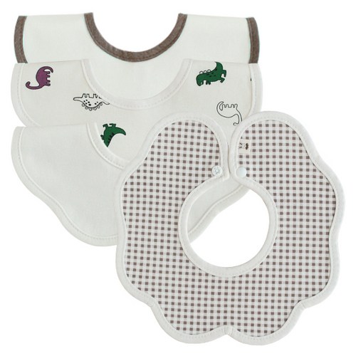 | 바니블라썸 유아용 롤링 브라운 공룡 턱받이 4종 세트, 코코아체크 베이지무지 공룡 브라운베이지, 1개, 1세트 |