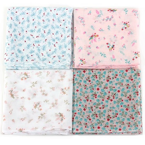 | 여성손수건 가제 면 쁘띠 목손수건 플라워 꽃무늬 5장 1세트 |
