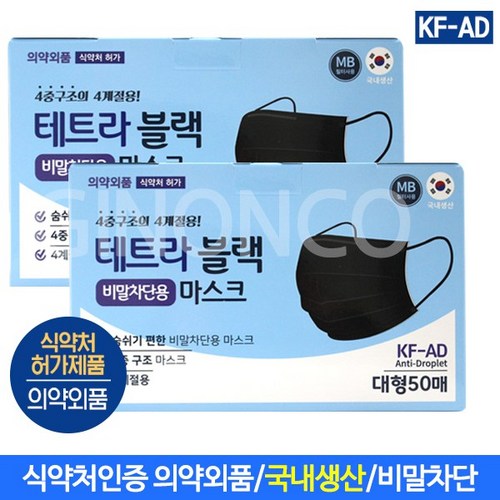 | 테트라블랙 비말차단용 마스크 대형 50매(2EA)KF-AD, 50매, 2개, 블랙 |
